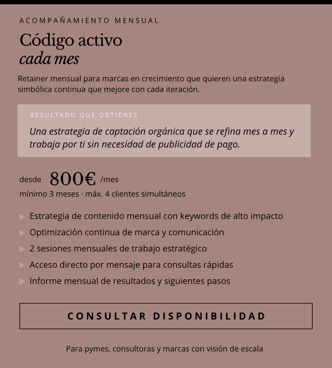 A eso lo llamo Código Simbólico®. No es magia ni intuición. Es la aplicación sistemática de la psicología del consumidor, los arquetipos de Jung y la semiótica aplicada al marketing para que tu comunicación venda sola.
